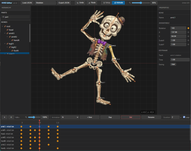HHB Editor is a web-based bone animation editor for GDevelop.